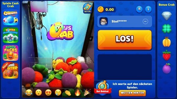 Sobald Sie die Runde gestartet haben, haben Sie 30 Sekunden Zeit, um den Greifarm über Pfeiltasten zu bewegen. Sie können in der Zeit sogar mehrere Gewinne herausziehen. Sie erhalten dann aber nicht alle, sondern wird zufällig bestimmt, welche Prämie Sie gewinnen.