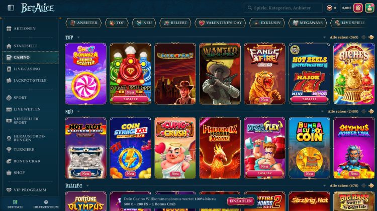Das BetAlice Casino findet man schon seit 2024 auf dem Markt und ist mittlerweile ein begehrtes Bonus Crab Casino. Wir haben uns den Anbieter in unserer BetAlice Casino Erfahrung genauer angeschaut und alle Vor- und Nachteile aufgelistet