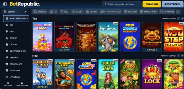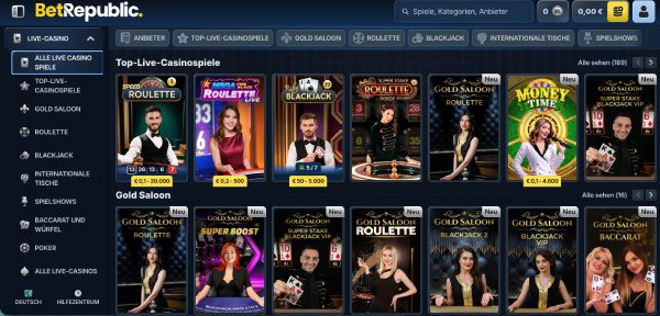 Obwohl das BetRepublic Casino noch sehr jung ist, ist hier für jeden Spieler etwas dabei. Denn hier finden Sie nicht nur Casino Spiele sondern auch einen vielfältigen Casino Bereich.