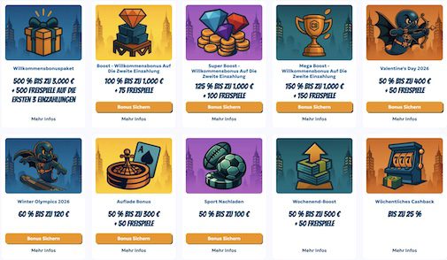 Bei einer Auswahl von über 3.000 Spielautomaten sollte man keine Probleme haben, ein passendes Spiel zu finden. Seien es moderne Videoslots, Retro-Klassiker oder abstrakte Spiele mit außergewöhnlichen Mechaniken. Sie können die Spiele übrigens auch als Demoversion spielen. Diese Option wird aber nur angezeigt, während man nicht eingeloggt ist.