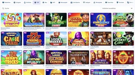 Die Spiele können über verschiedene Kategorien gefunden werden. Die Kategorie für Slots wurde etwas holprig mit „Schlitze“ übersetzt. Uns gefällt das Engagement, dass thematisch passende Spiele zu bestimmten Ereignissen in eigenen temporären Kategorien gefunden werden können. Bei unserem Test zeigte sich Casperbets hier beispielsweise im Valentinstags-Fieber.