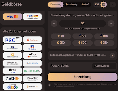 Sie können Einzahlungen ab einem Betrag von 10€ vornehmen und dabei auf diese Casino Zahlungsmethoden setzen.
