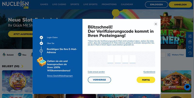 Ja, Sie müssen sich anmelden und Ihre E-Mail-Adresse verifizieren, bevor Sie Zugriff auf Casino Spiele haben.