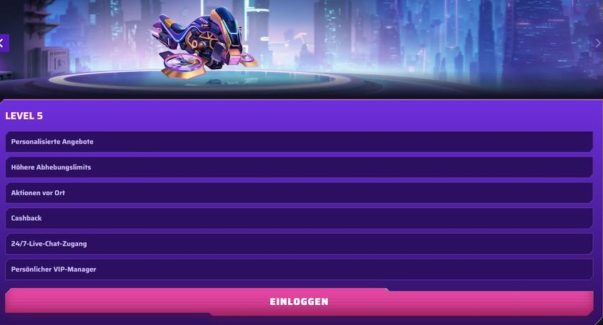 Das Robycasino verfügt über ein fünfteiliges VIP-Programm. Das Programm ist für alle Spieler zugänglich. Durch das Spielen mit echtem Geld können Sie mit der Zeit in den Stufen aufsteigen, wodurch fortlaufend bessere Prämien und Vorteile freigeschaltet werden.