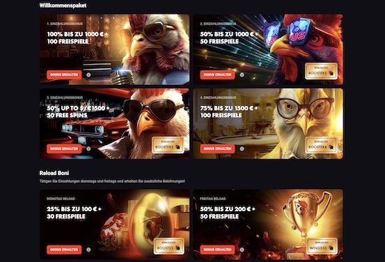 Wir wollten eigene Rooster Bet Erfahrungen sammeln, um herauszufinden, ob dieser Anbieter wirklich der Hahn im Korb der neuen Online Casinos ist. In unserem Rooster Bet Test finden Sie heraus, was die Stärken und Schwächen des Casinos sind, und für welche Spieler sich das Online Casino am besten eignet.