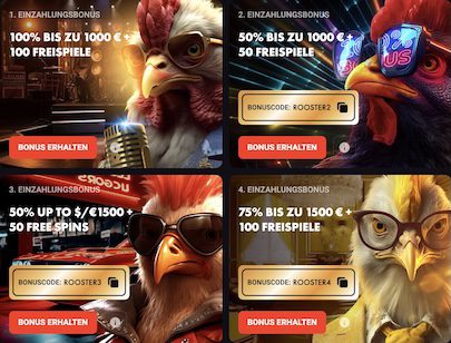 Wir sehen das Rooster Bet Casino als ideale Anlaufstelle für neue Spieler, die erste Erfahrungen in einem neuen Online Casino sammeln möchten. Das Begrüßungspaket mit vier Boni bietet nämlich einen perfekten Einstieg, um alle Facetten des Casinos und seine Spielauswahl ausgiebig kennenzulernen.