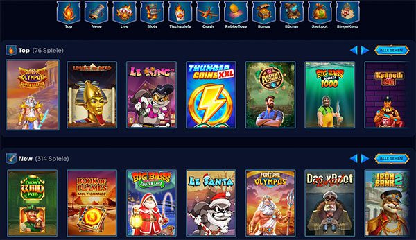 Es gibt allein über 7.500 Spielautomaten zu verschiedenen Themen und mit ganz unterschiedlichen Features und Mechaniken. Praktischerweise können Sie die Slots ohne echtes Geld mit Spielgeld ausprobieren. Die Demoversionen sind aber nur abrufbar, solange Sie nicht eingeloggt sind. Innerhalb der Slotübersicht können Sie Kategorien nutzen, um passende Spiele zu finden. So können Sie nach den beliebtesten und neuesten, aber auch nach Eigenschaften wie Bonusbuy oder Bücherslots suchen.